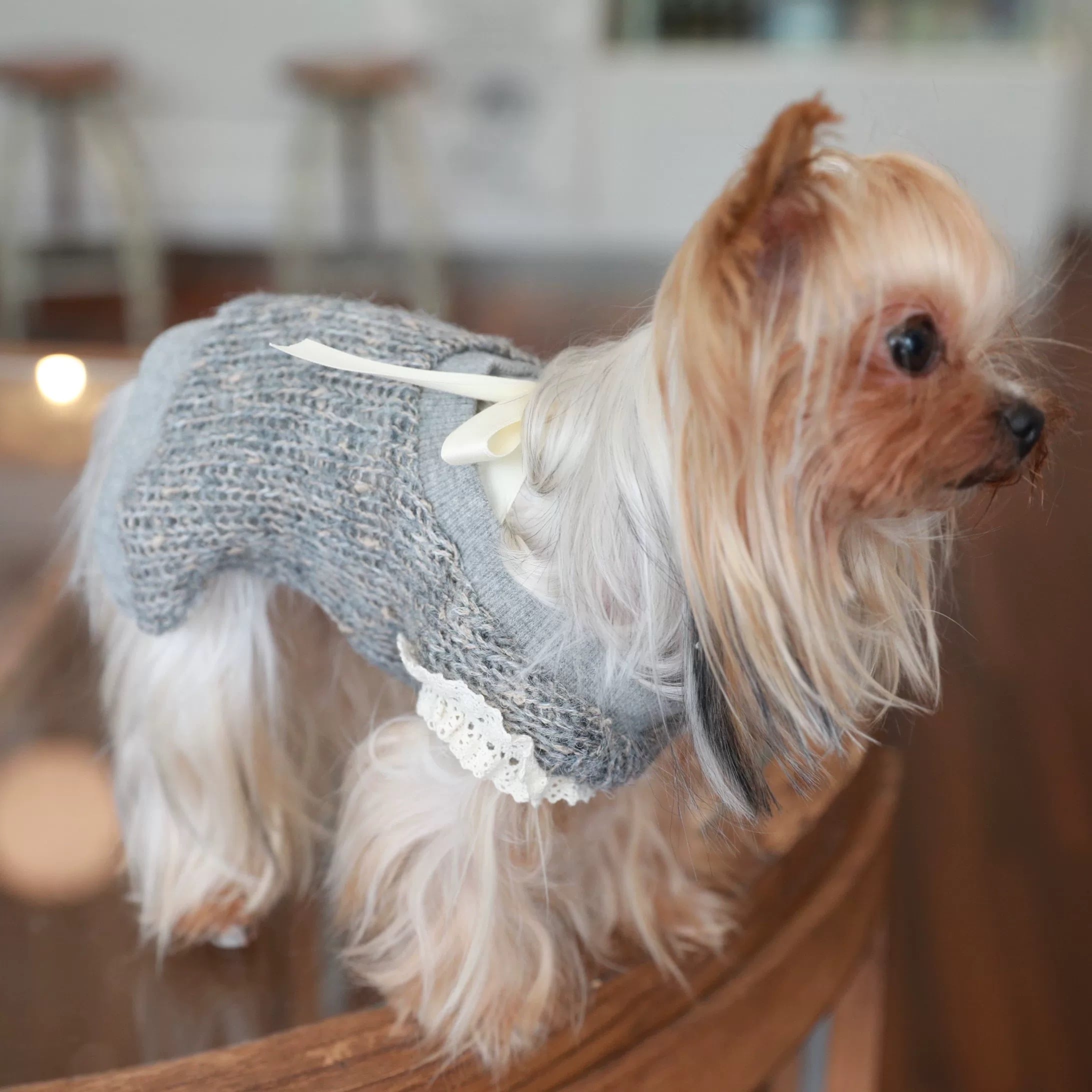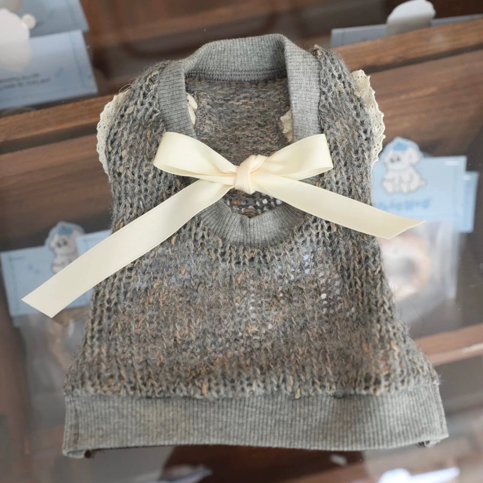 open back ribbon gray knit vest