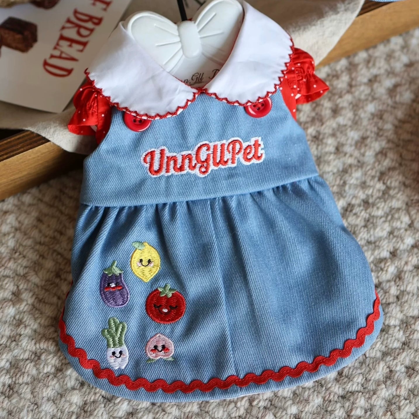 denim embroidery one-piece