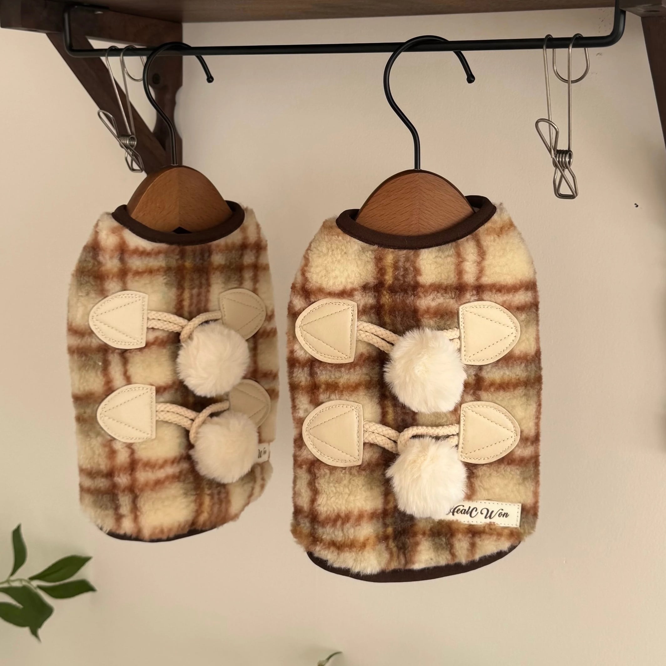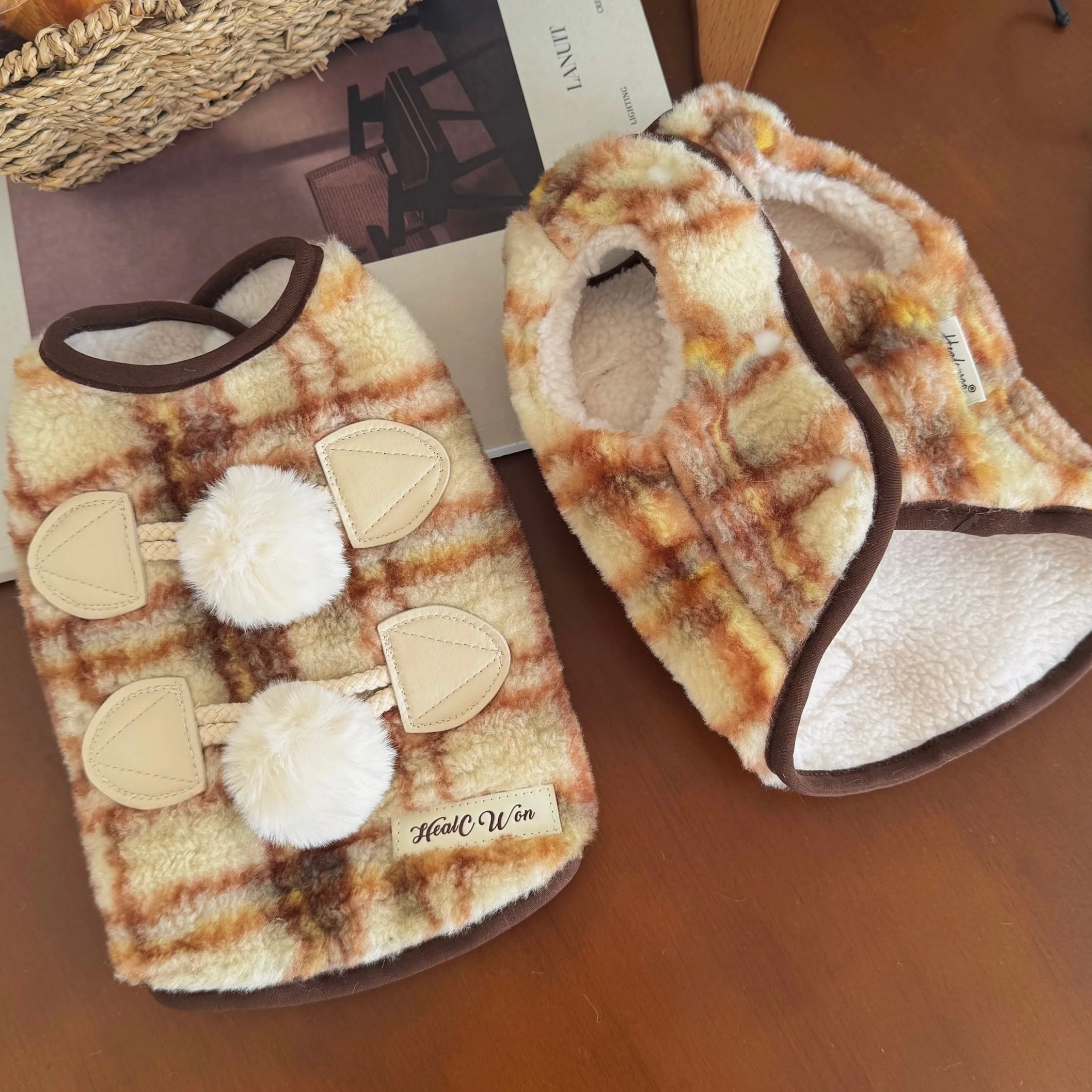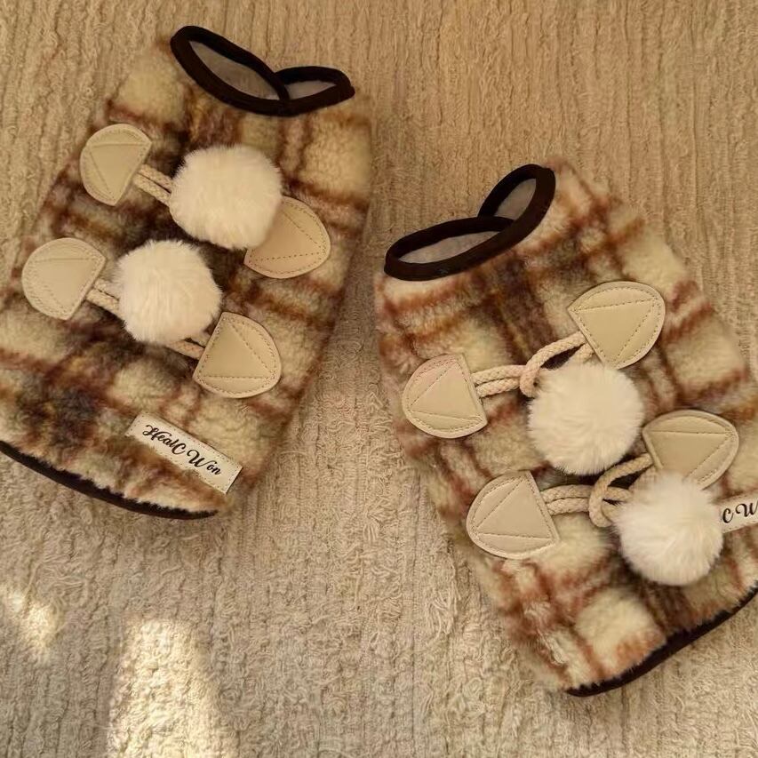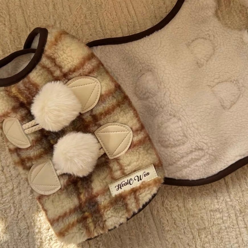 pom pom duffle check vest