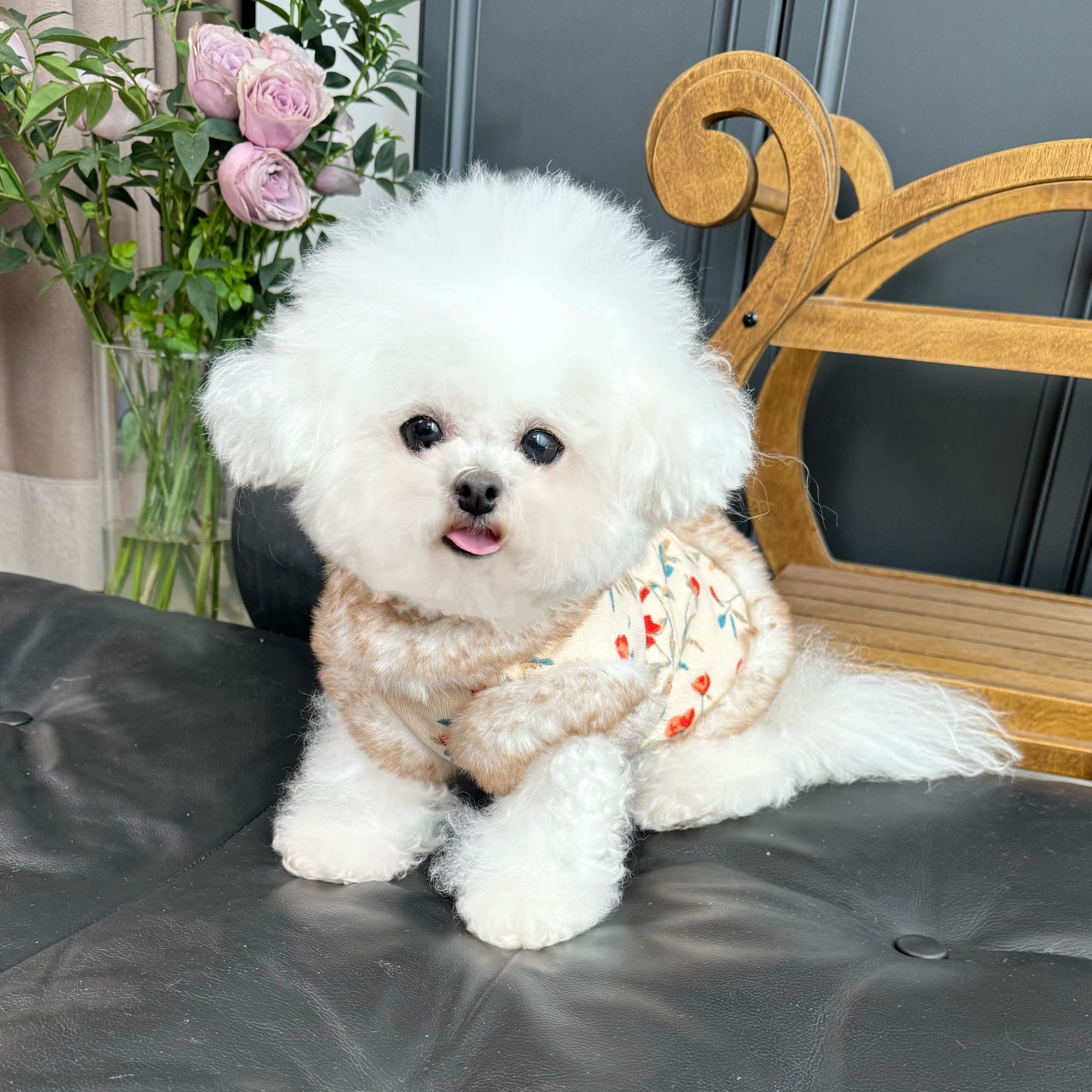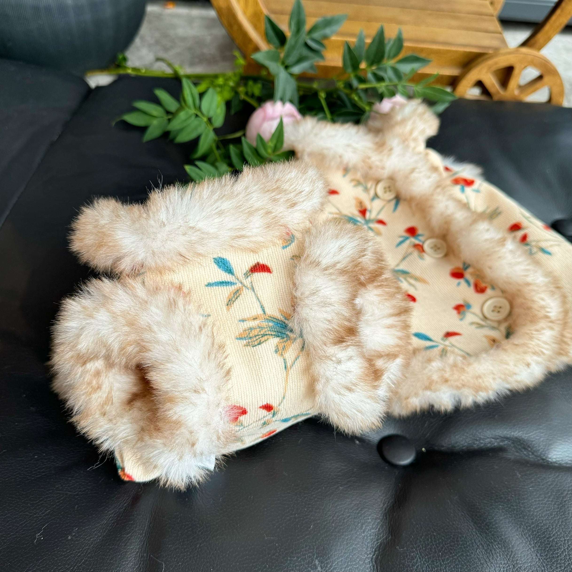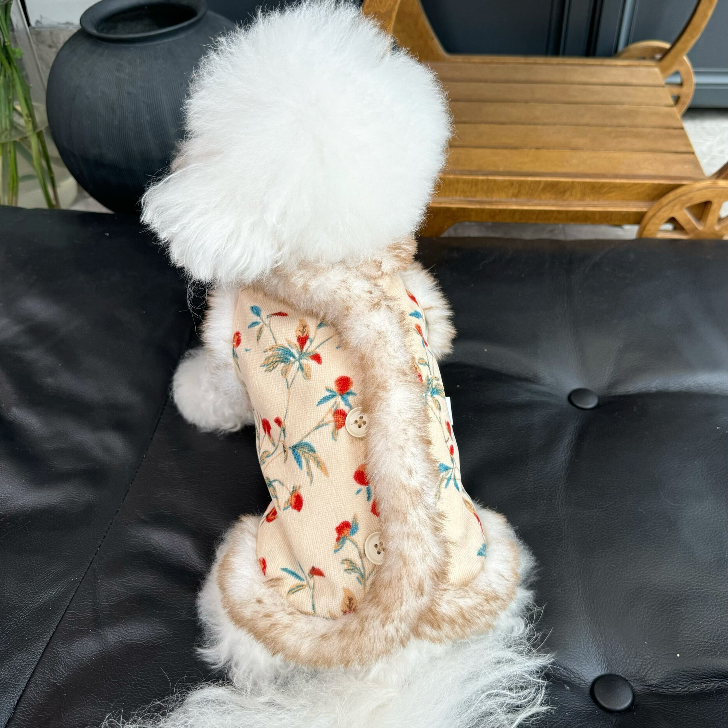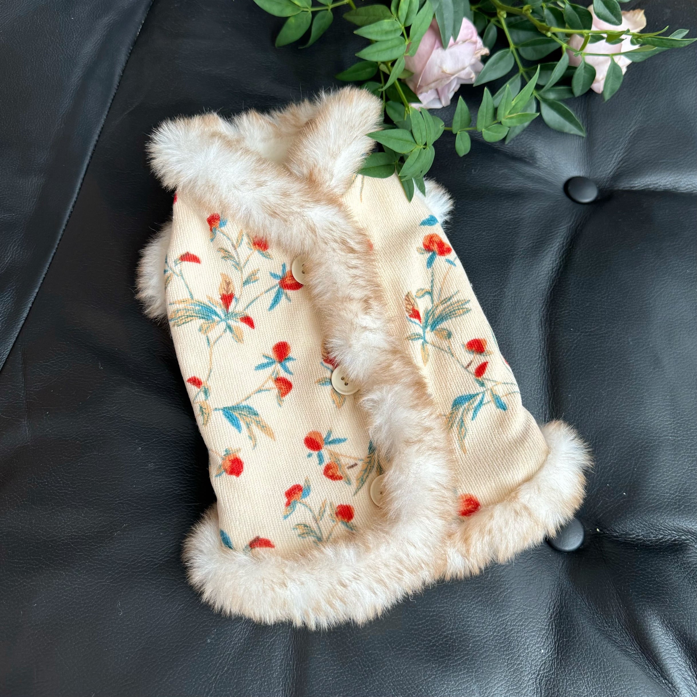 floral fur trim coat