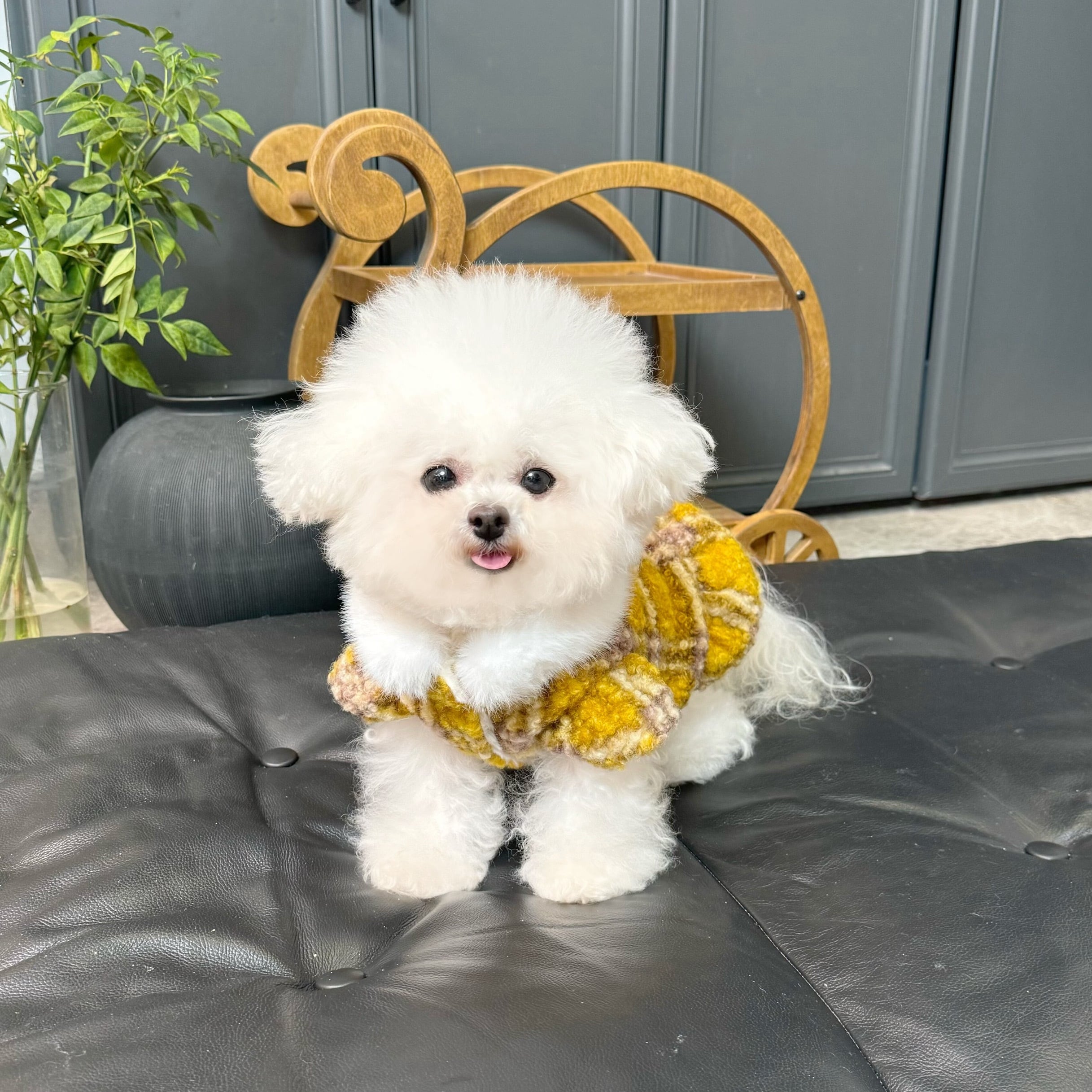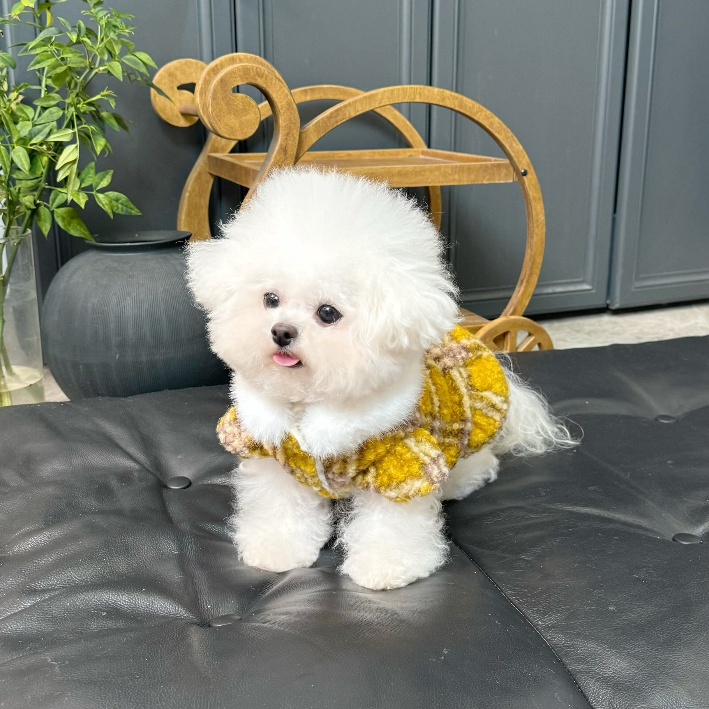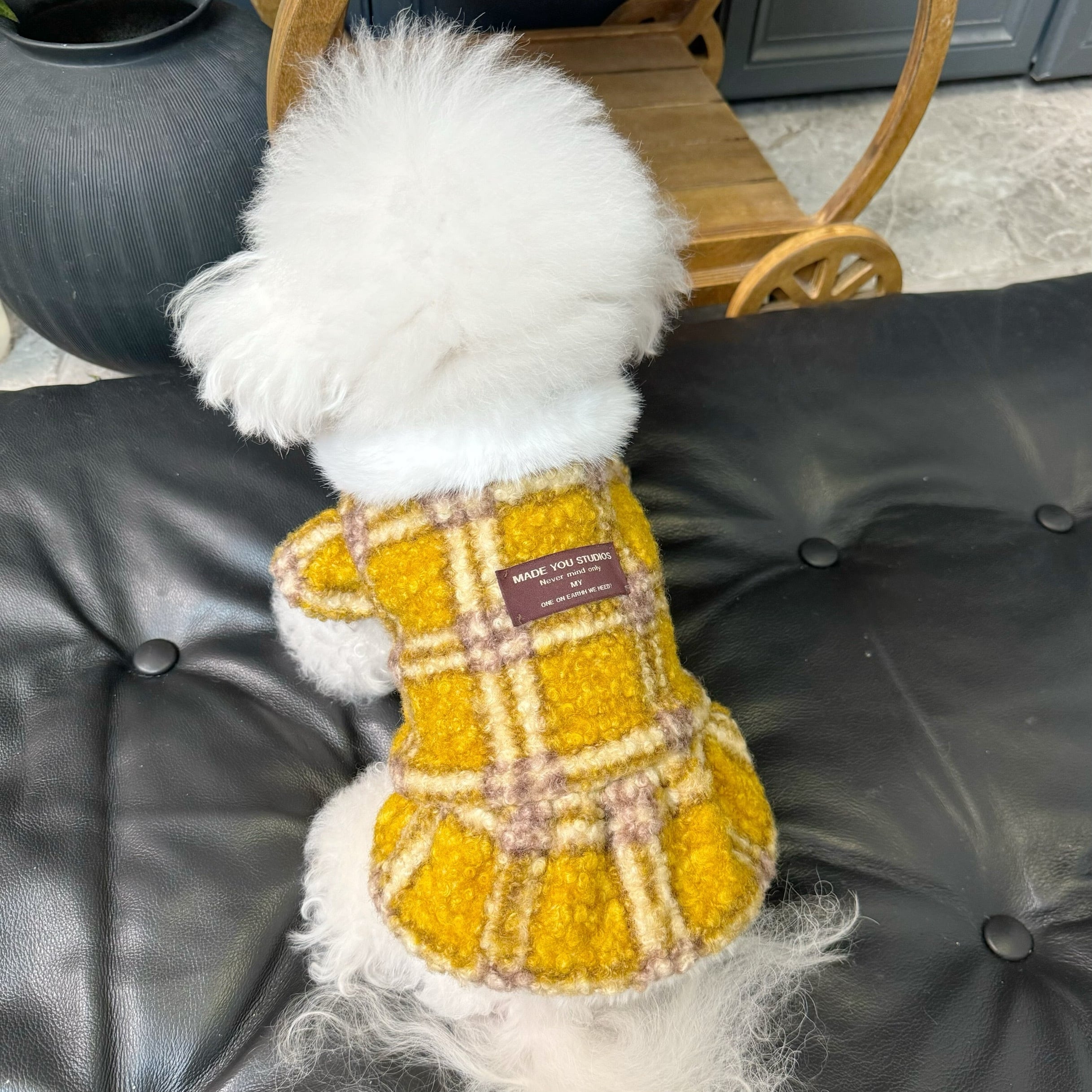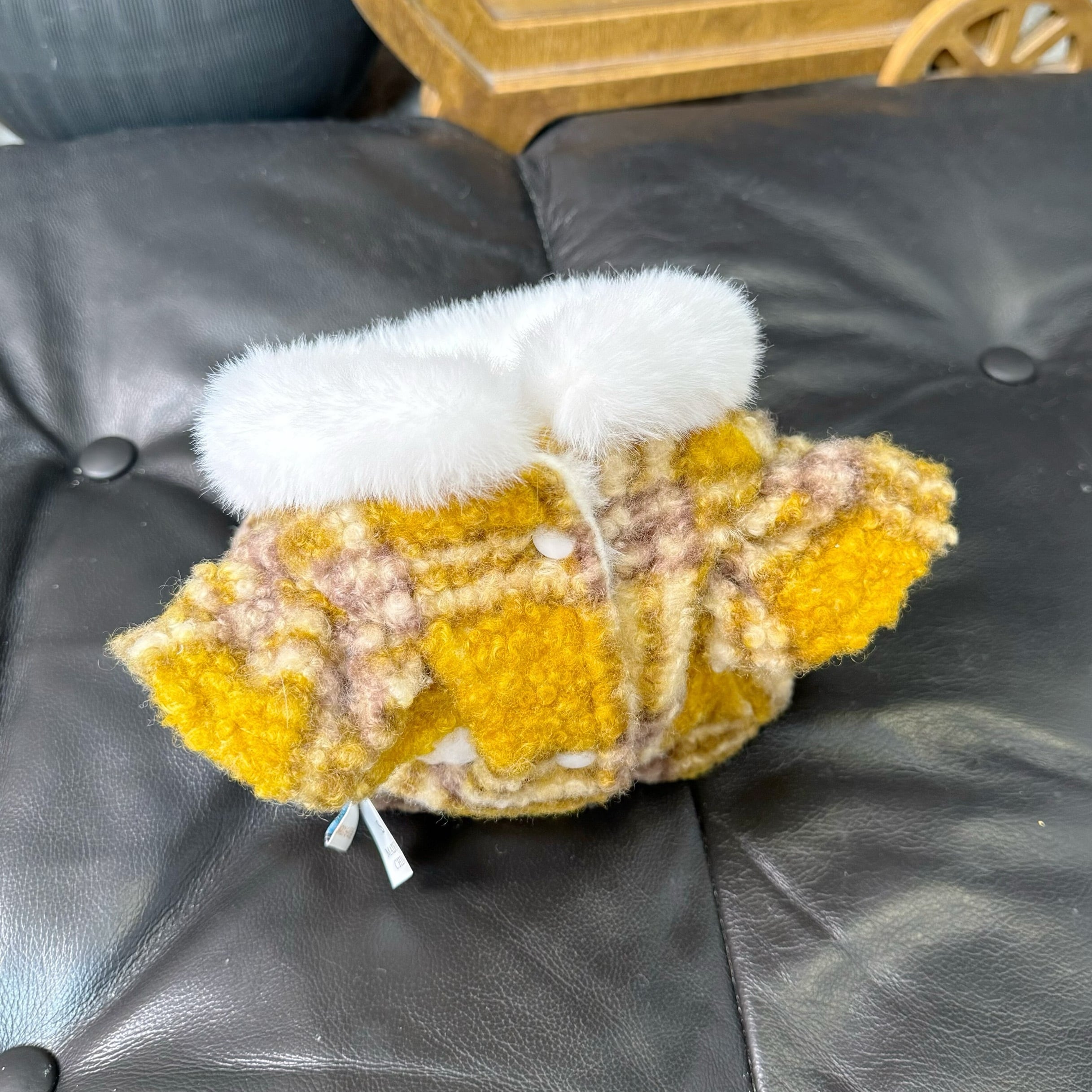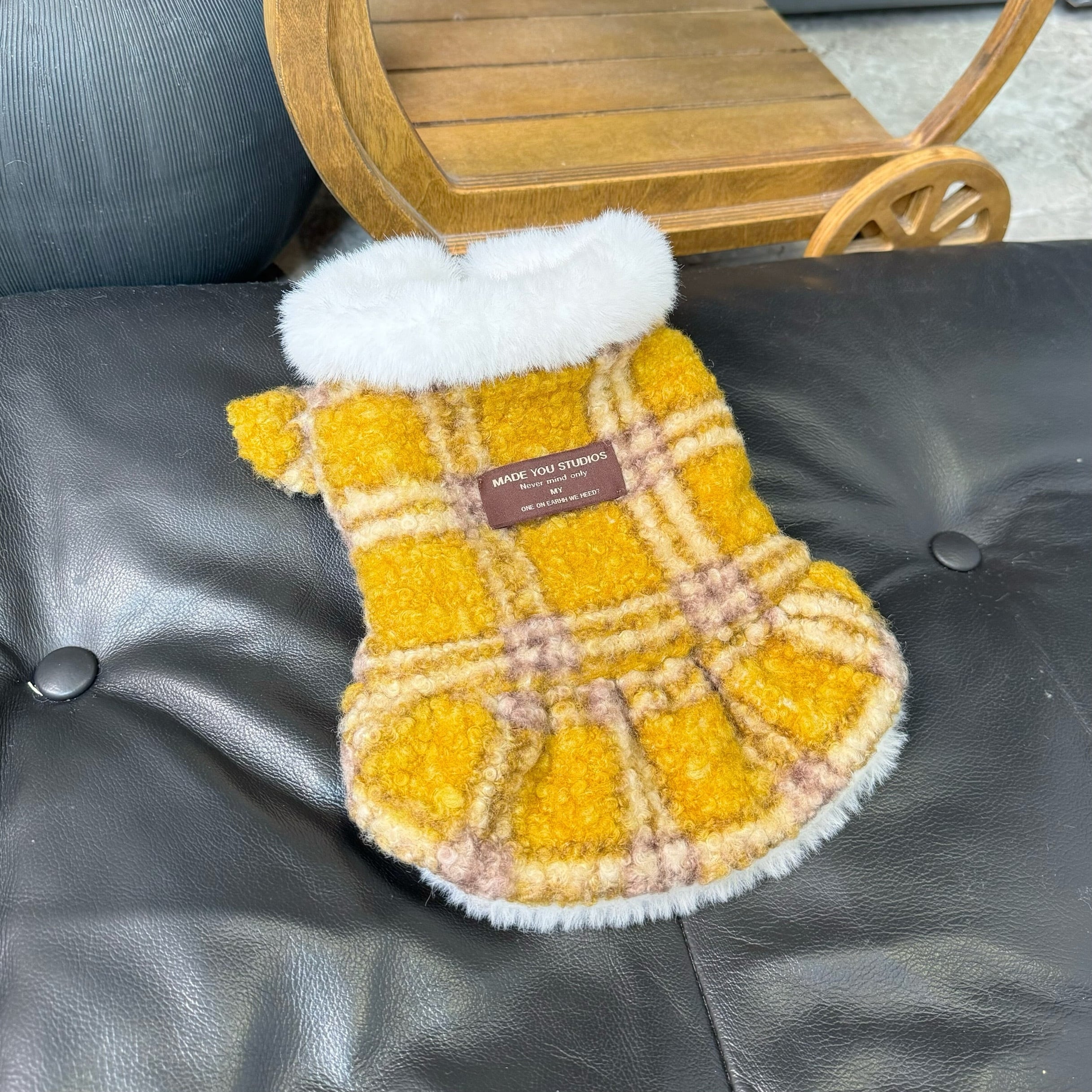 mustard check fur coat