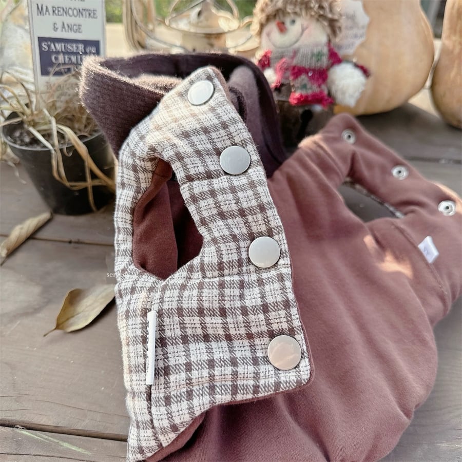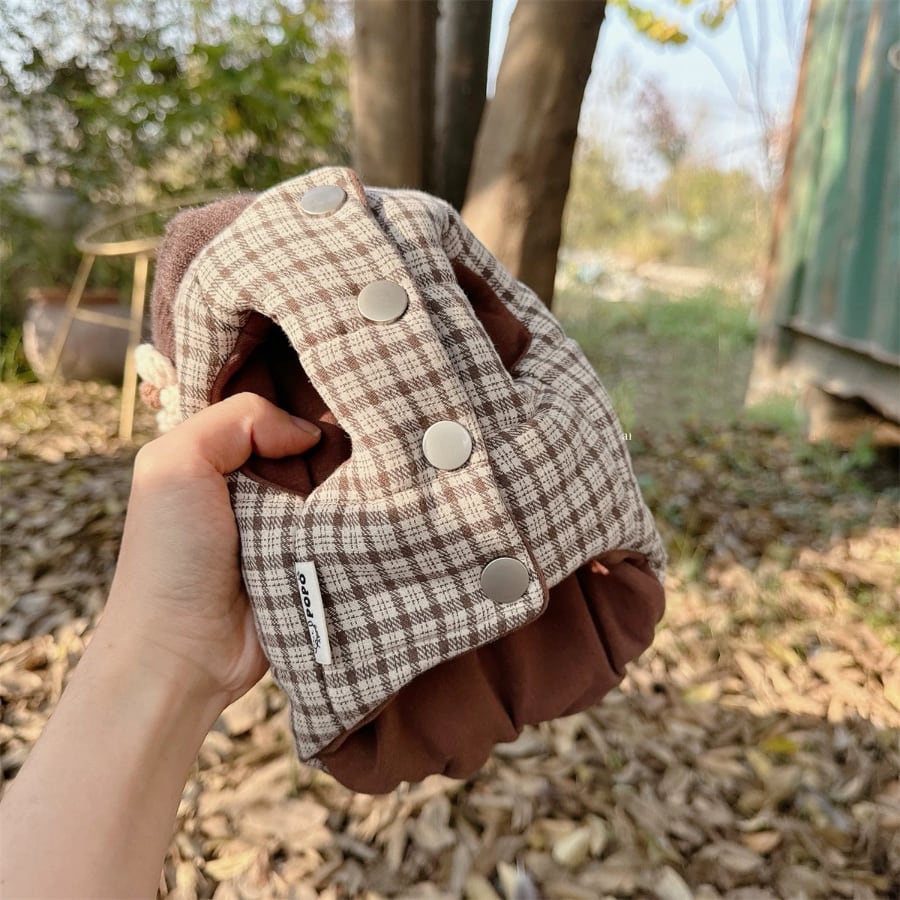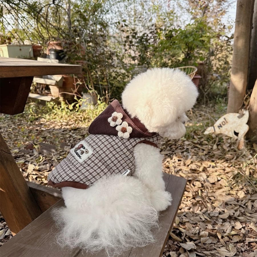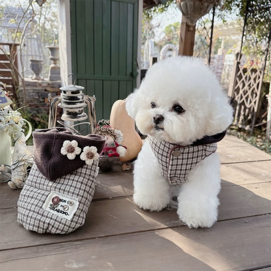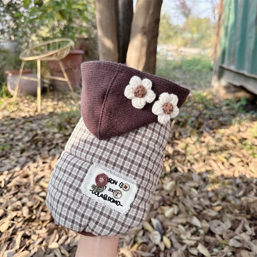 brown check flower hood coat