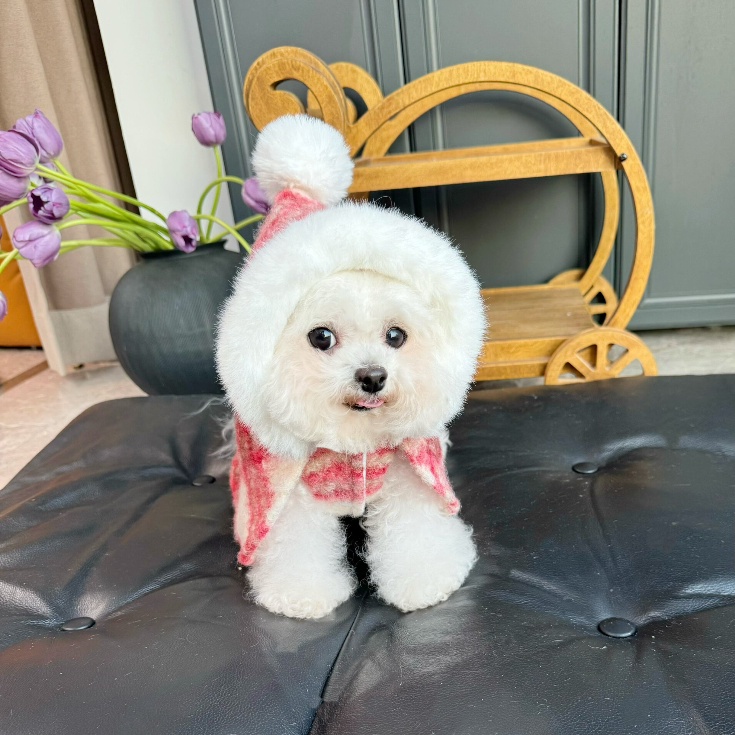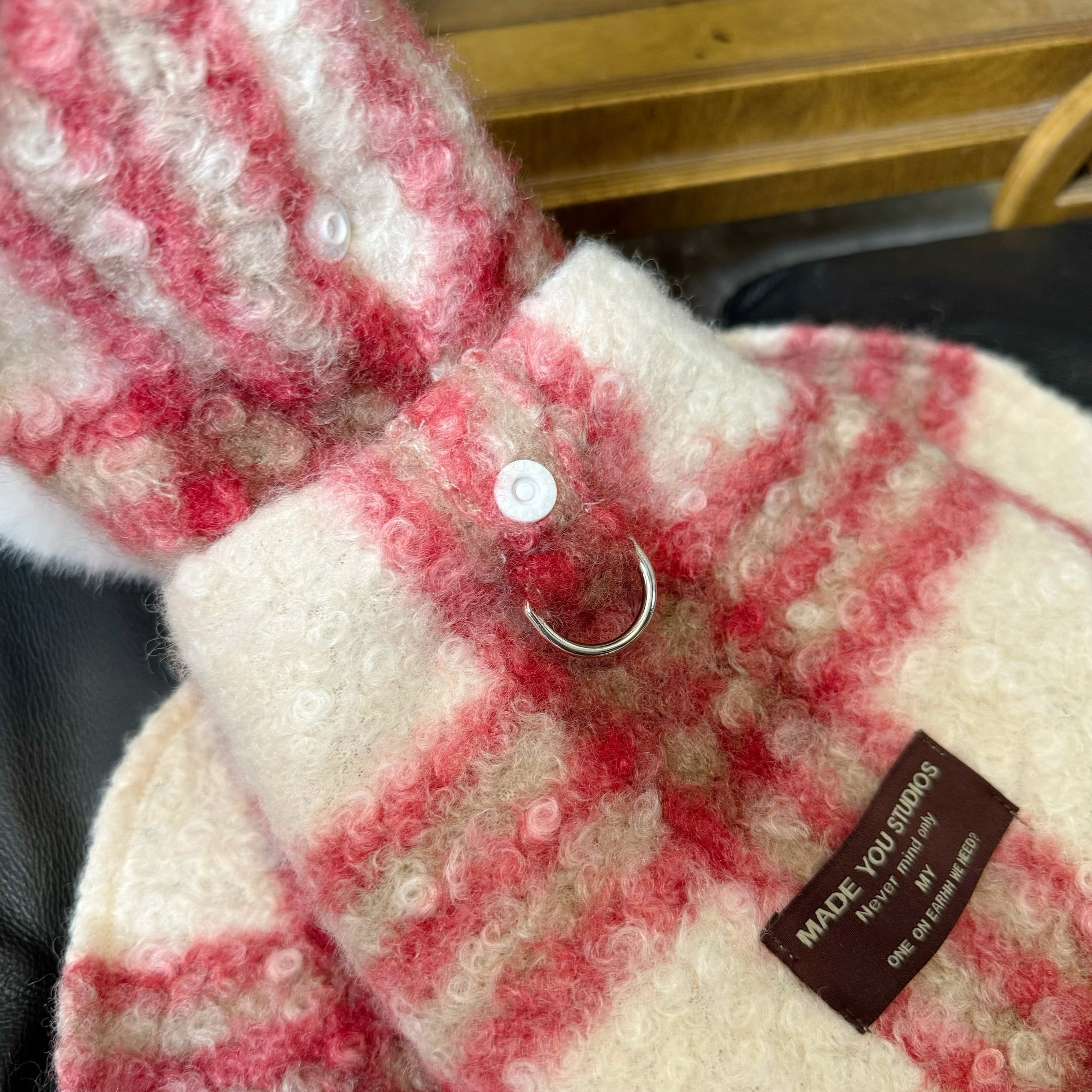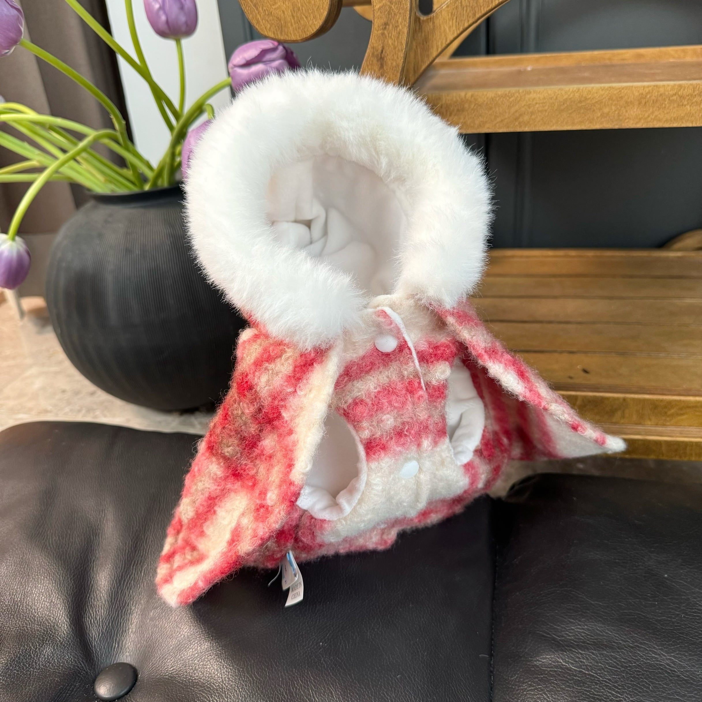 fluffy check red hood cape