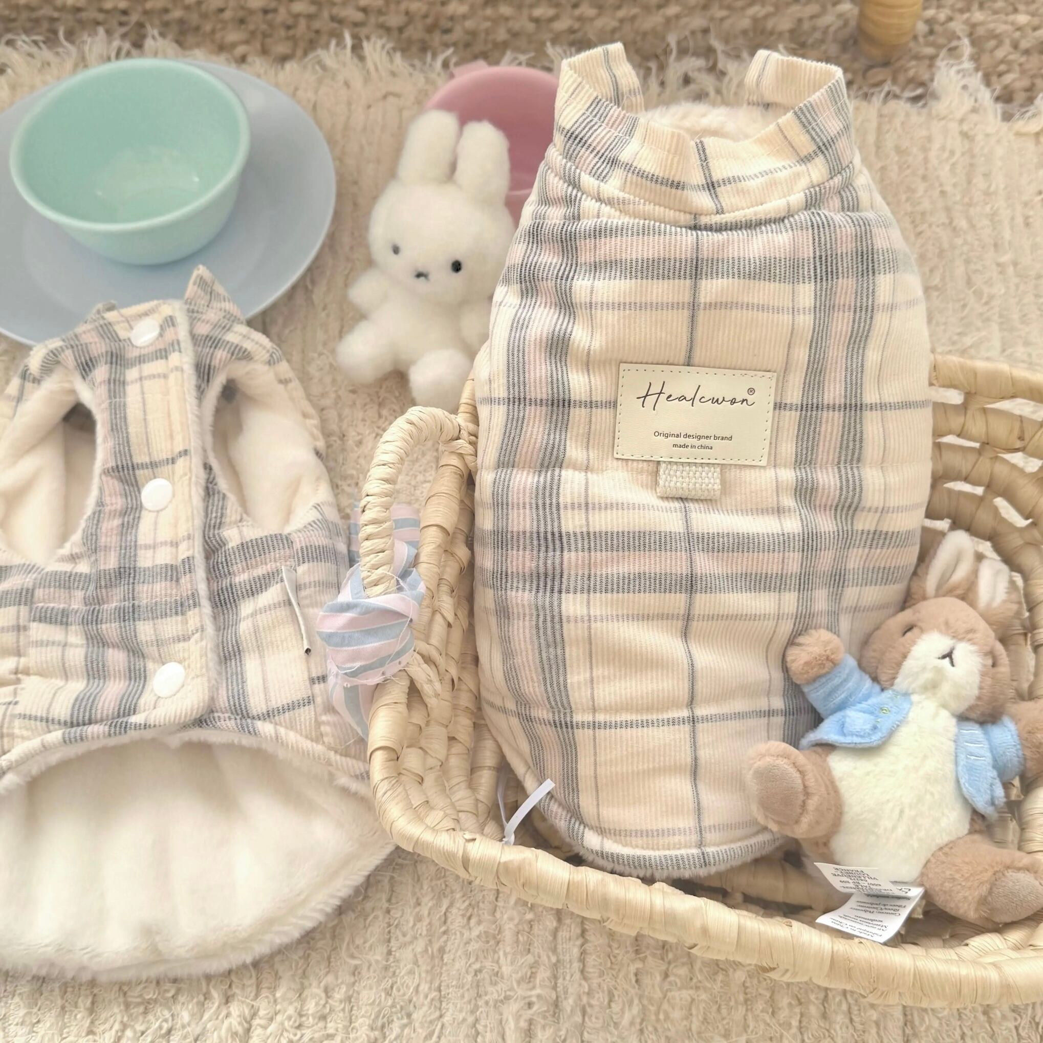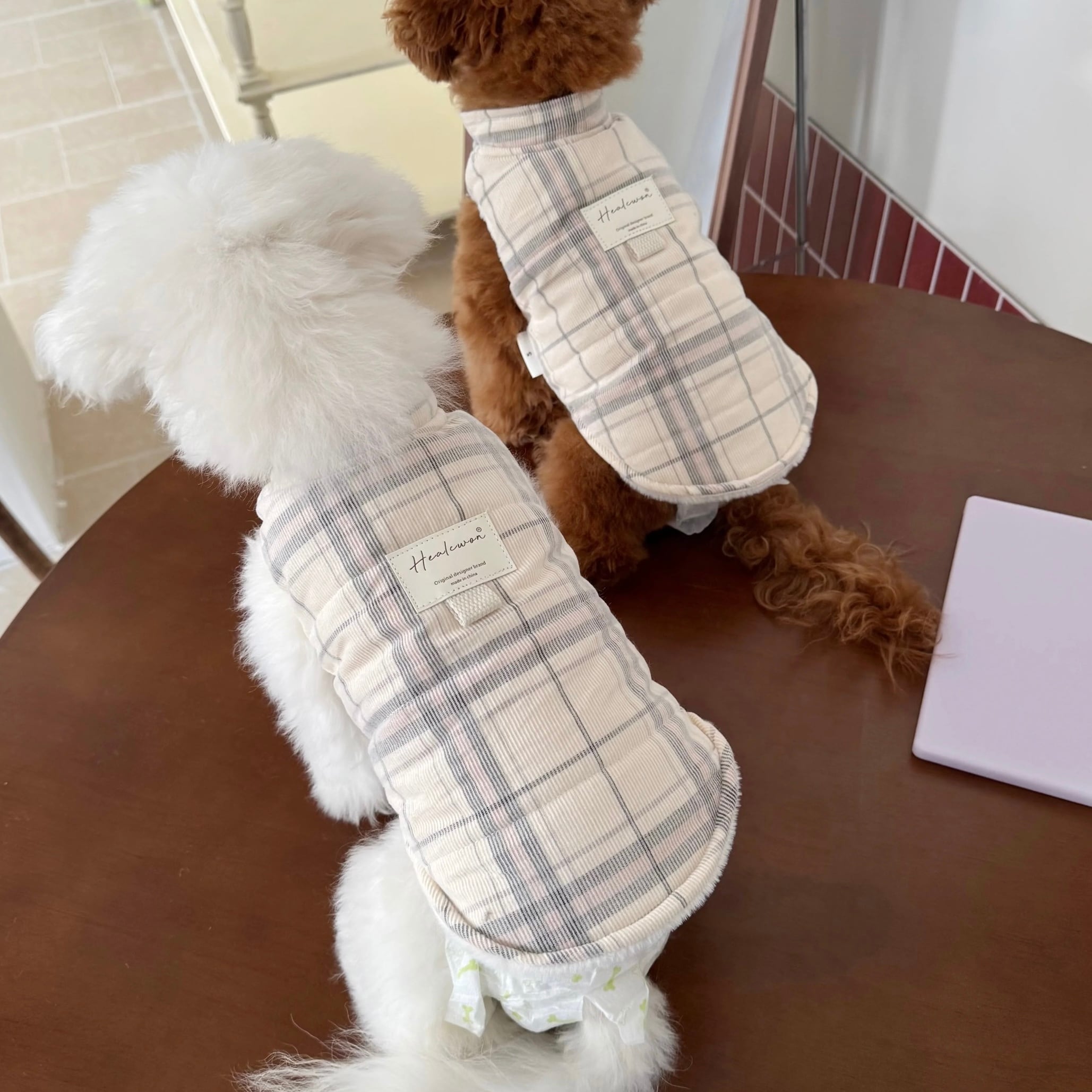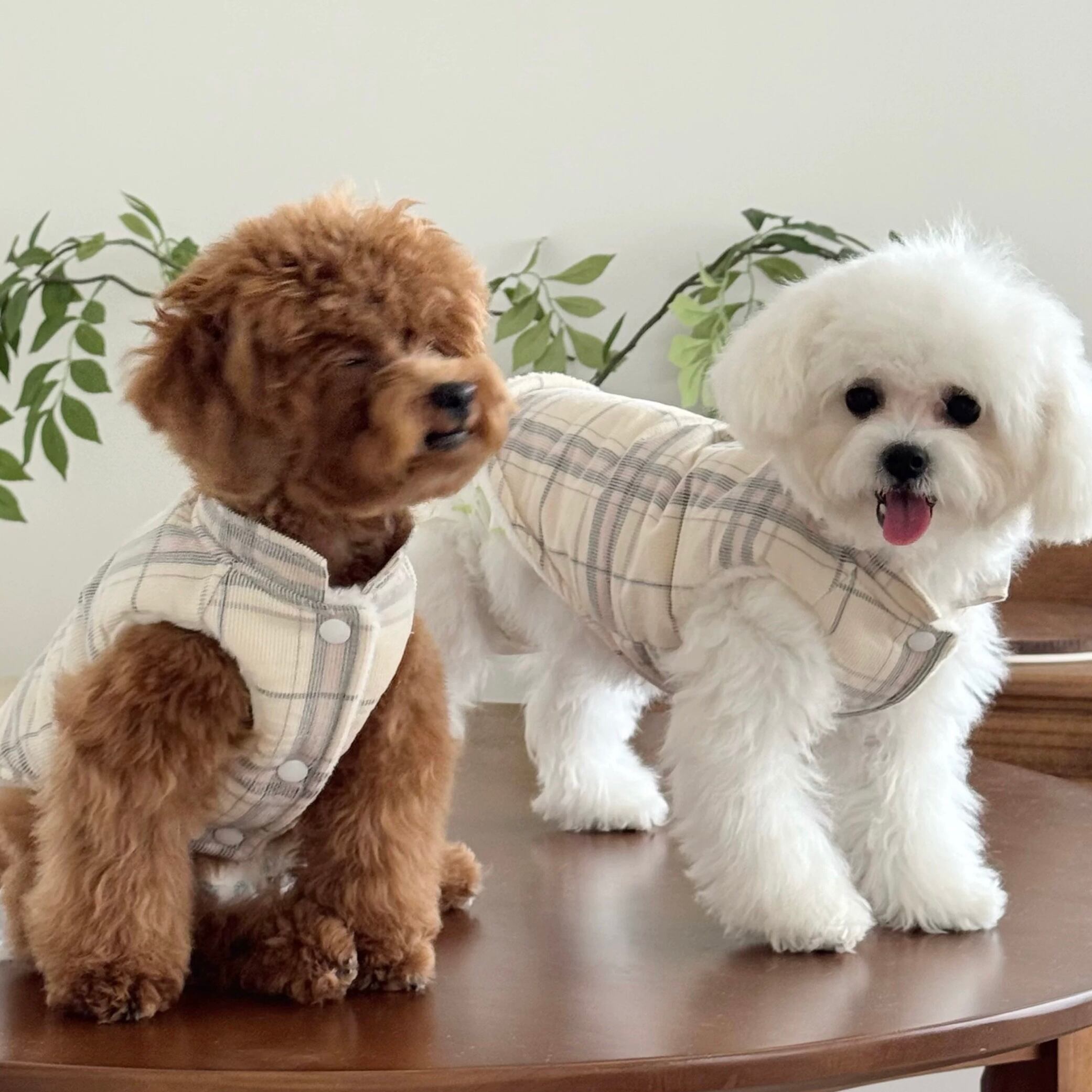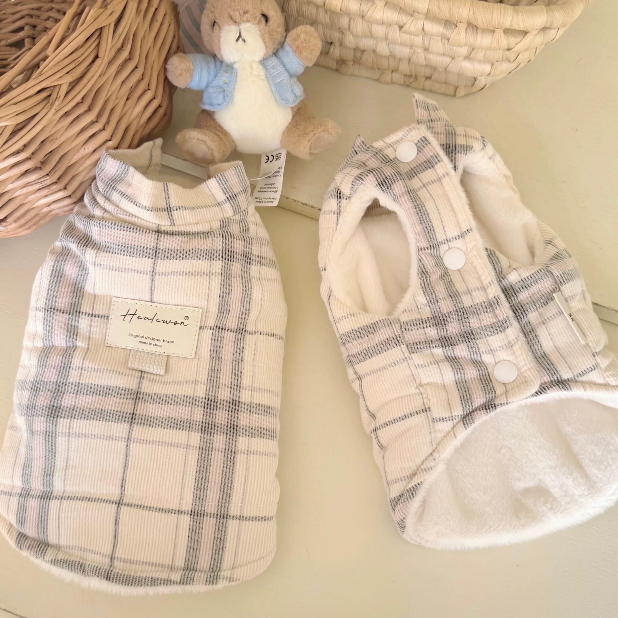 milky check warm vest