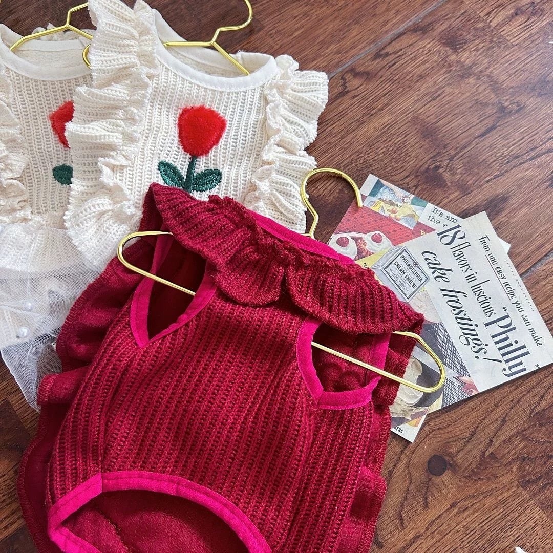 frill flower knit dress