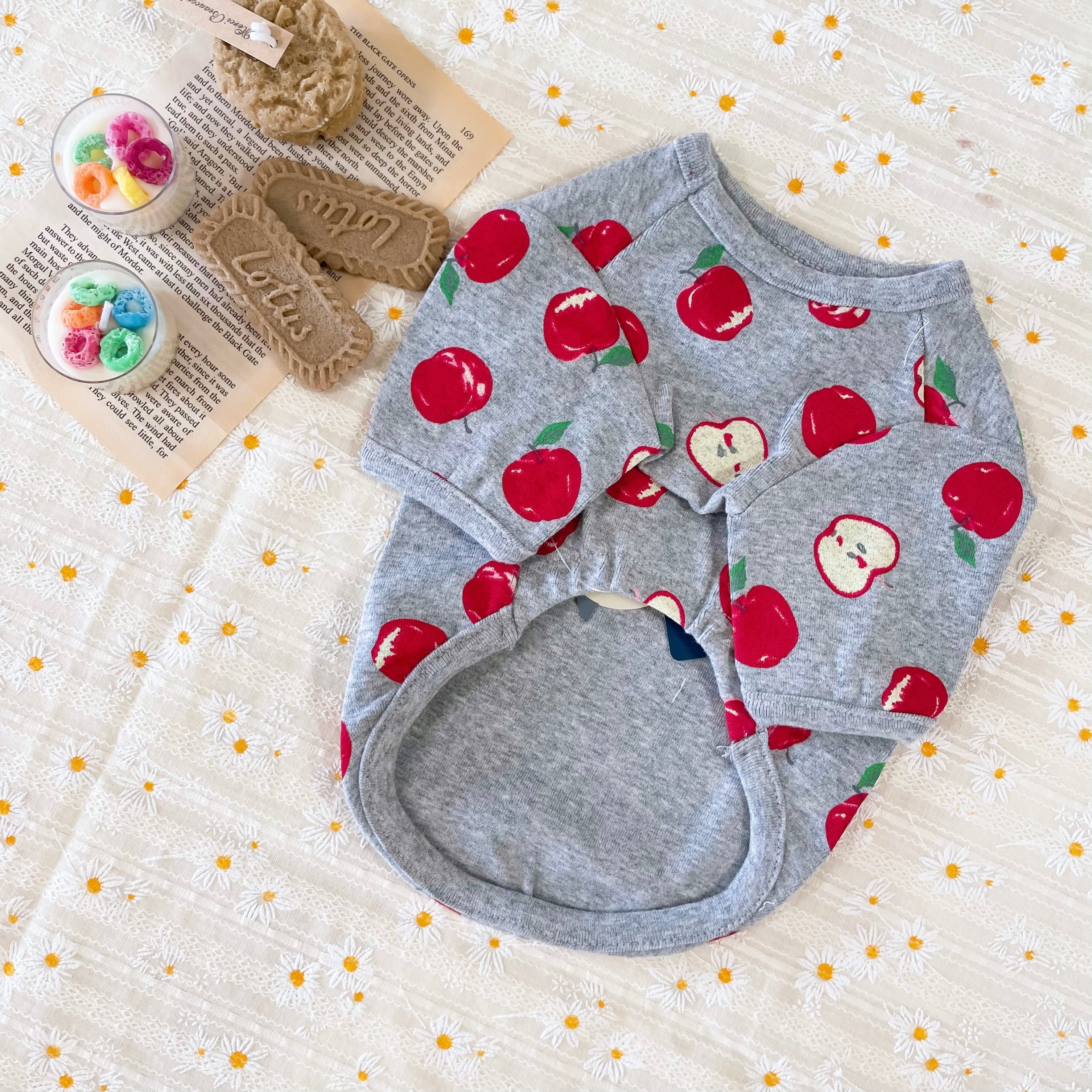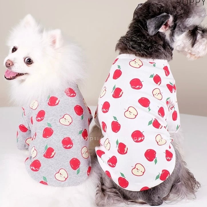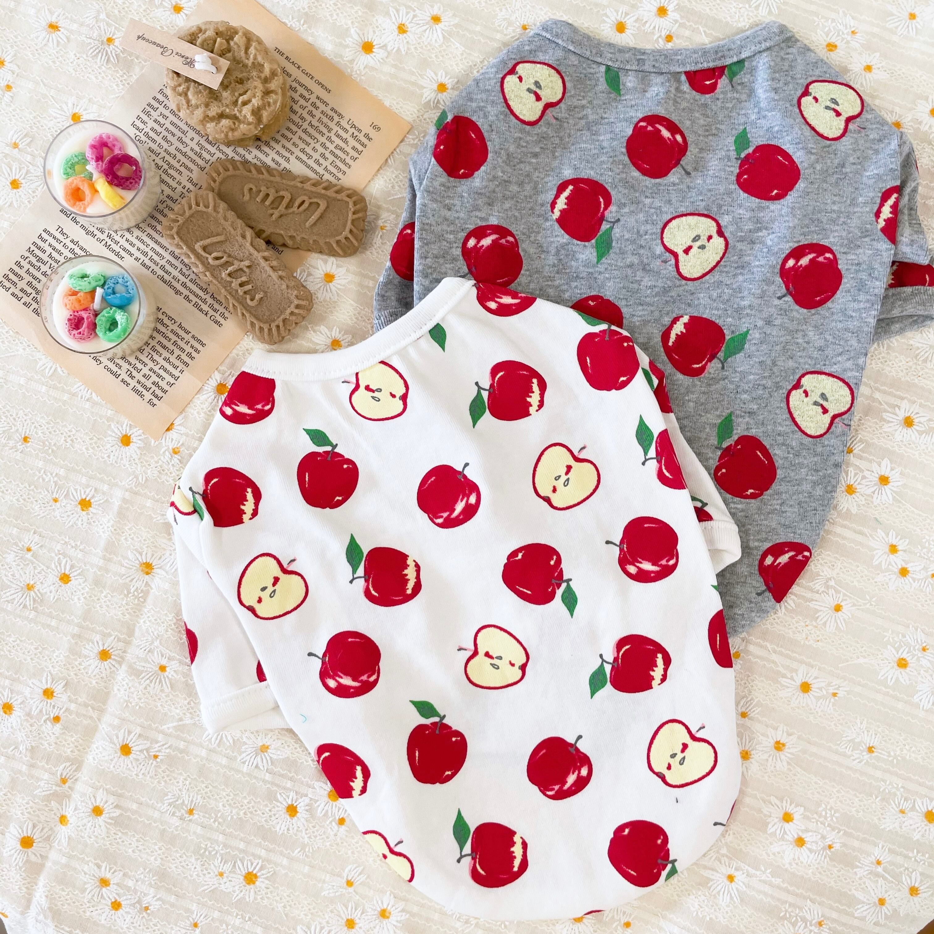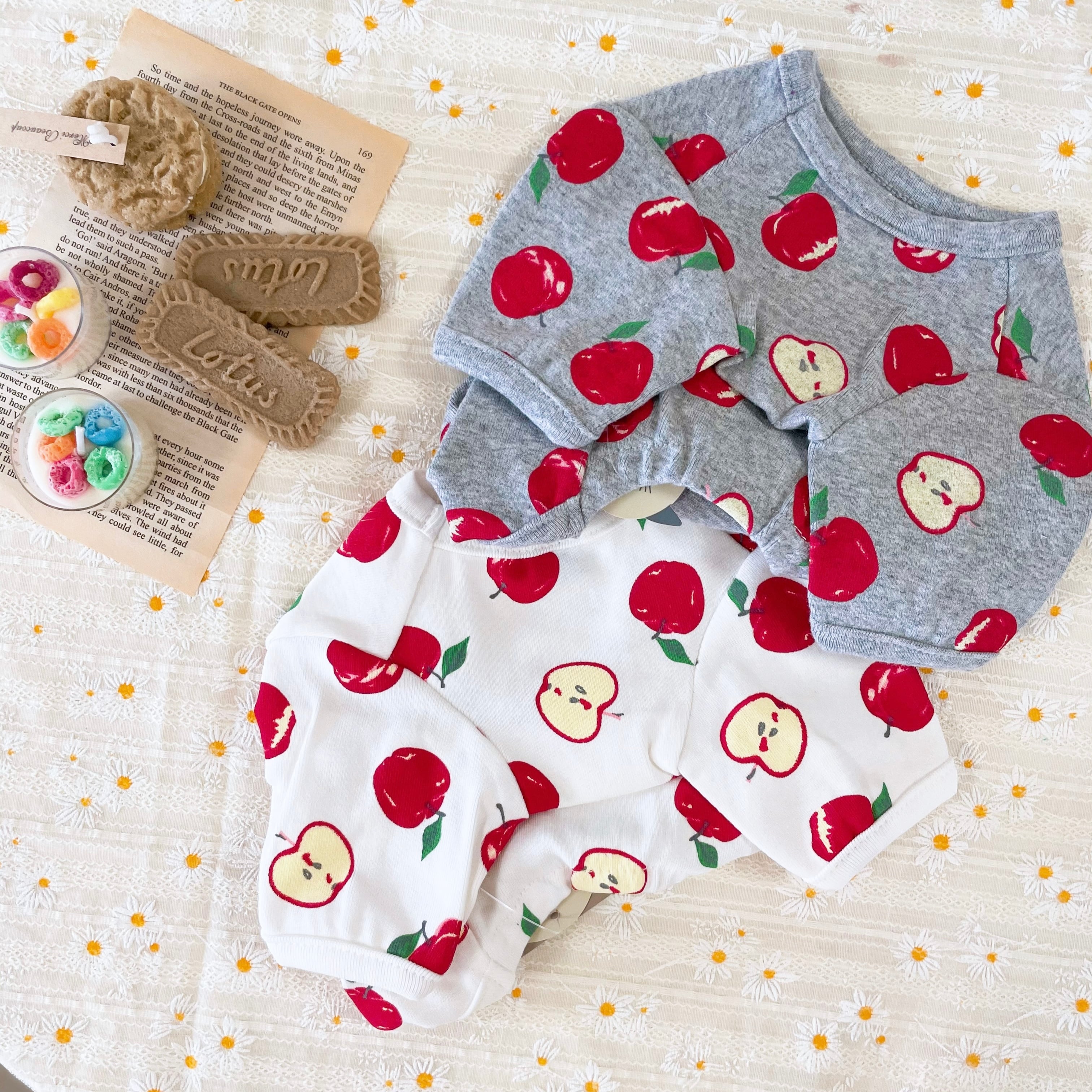 沢山のリンゴプリントのTシャツ。