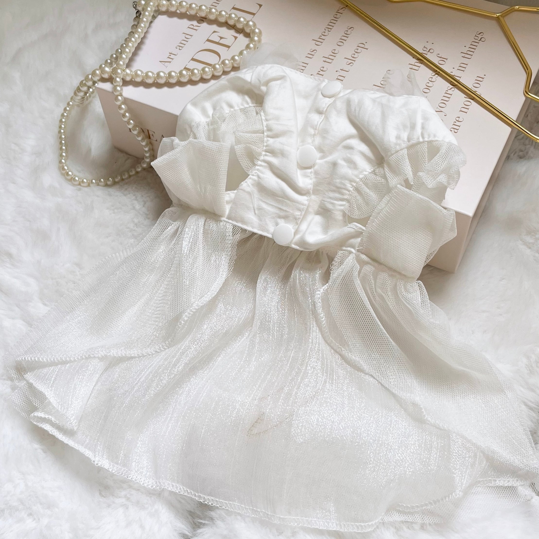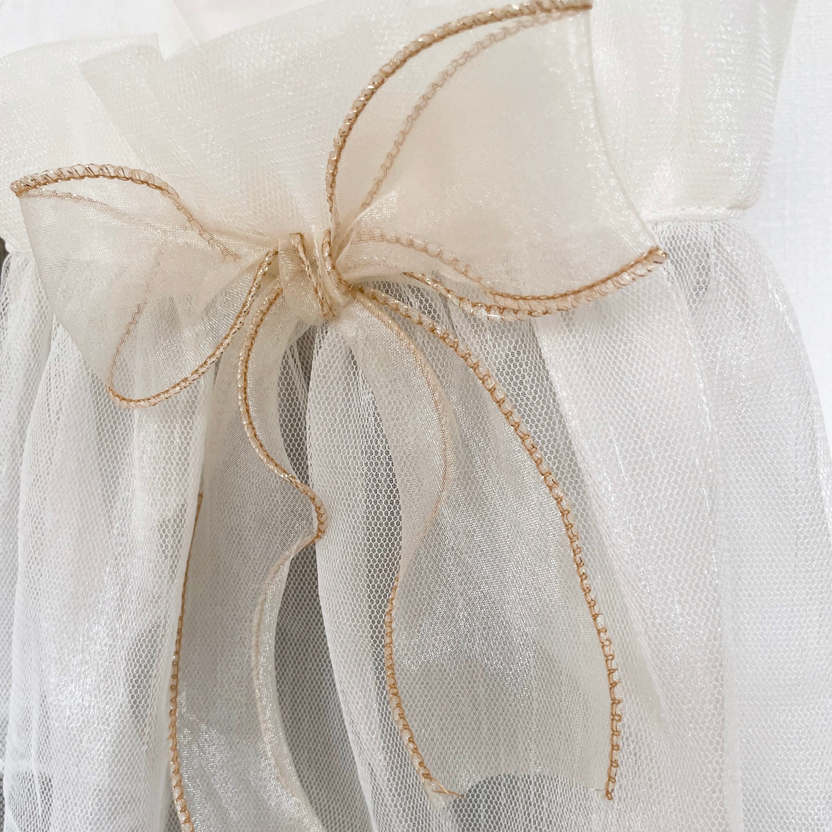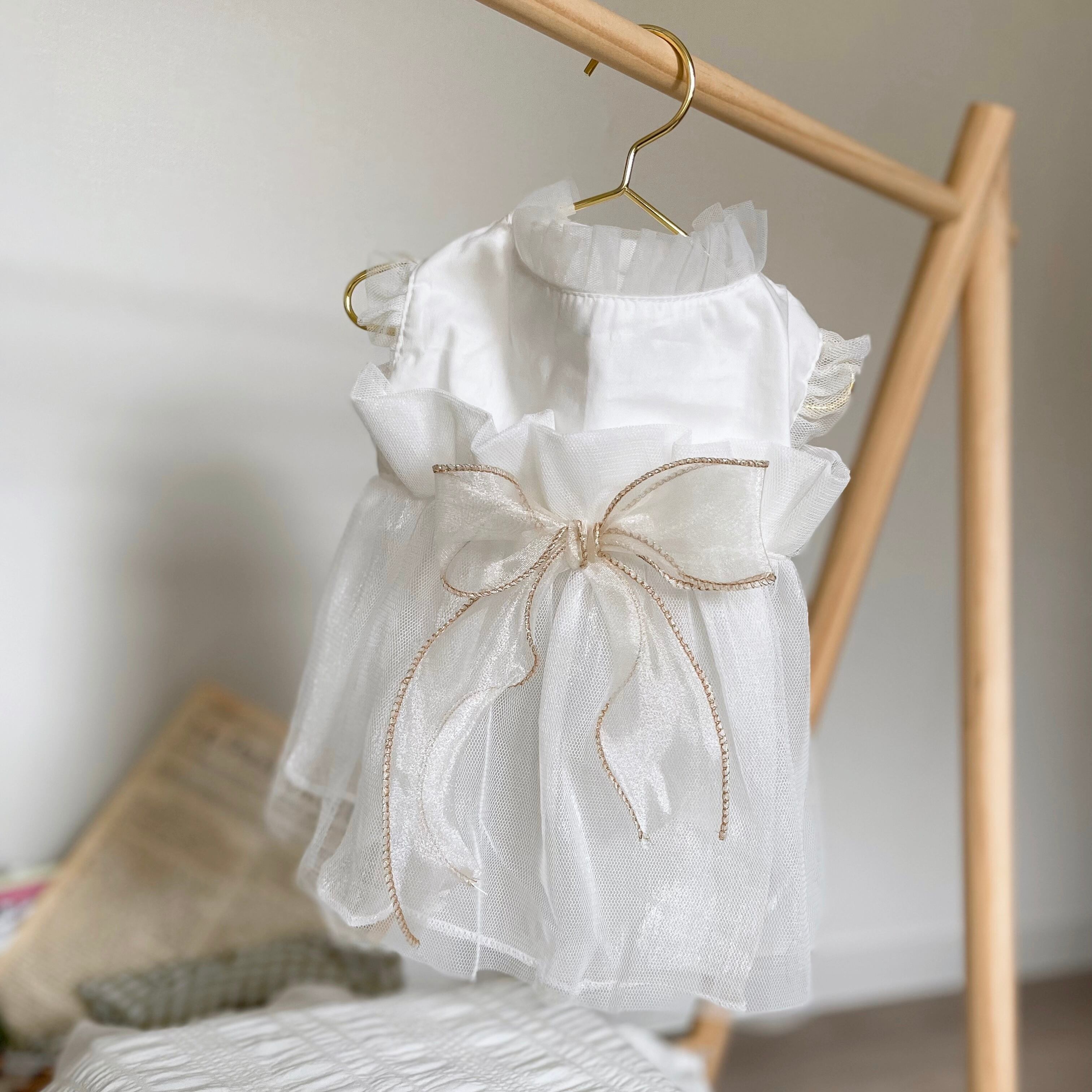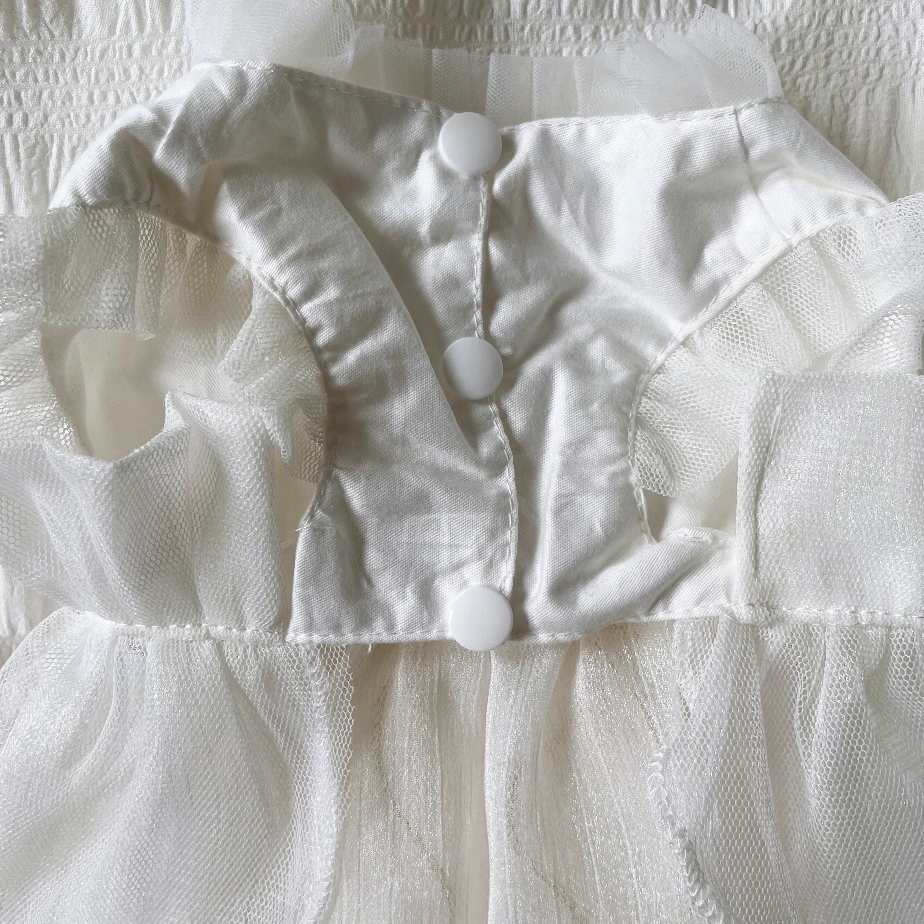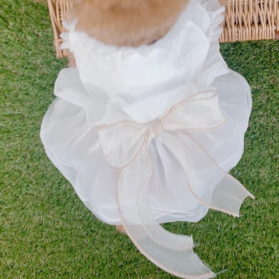 white tulle ribbon dress