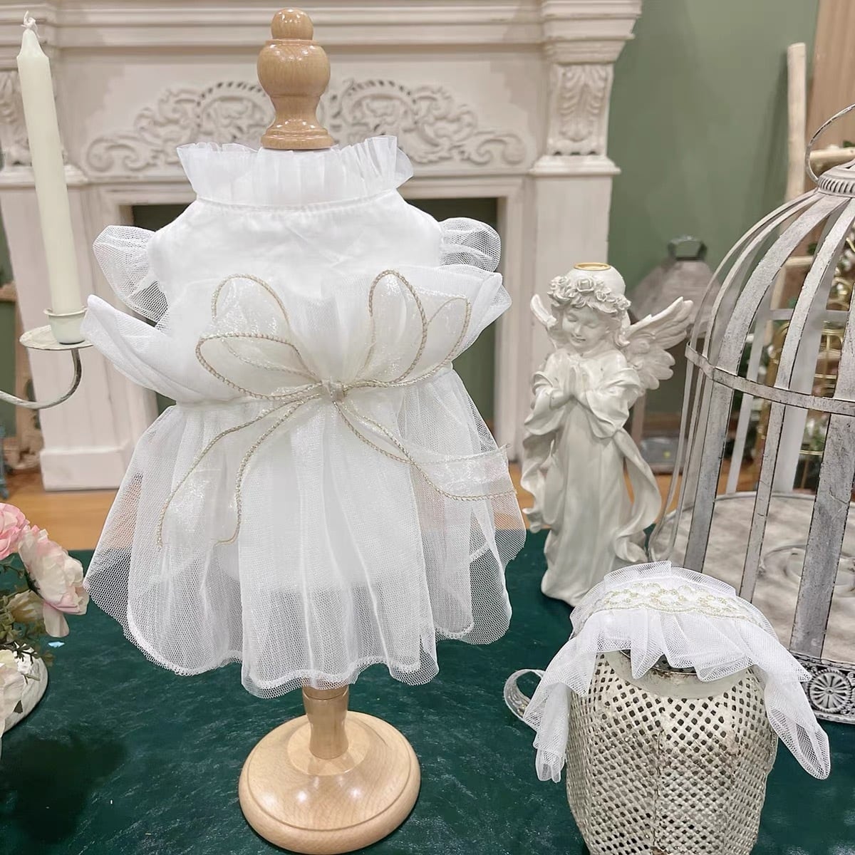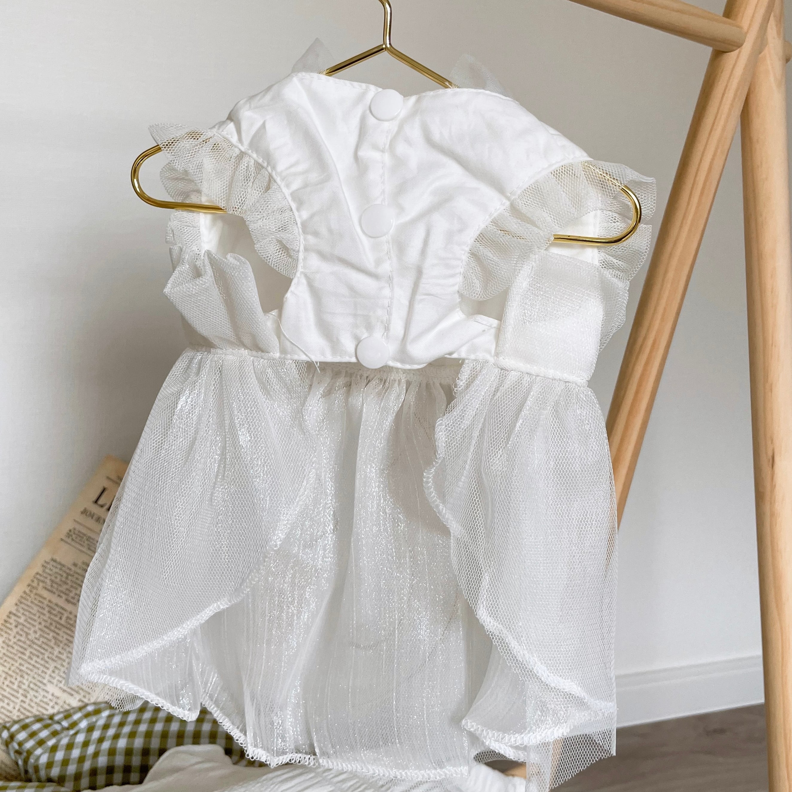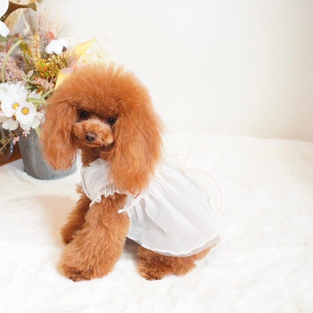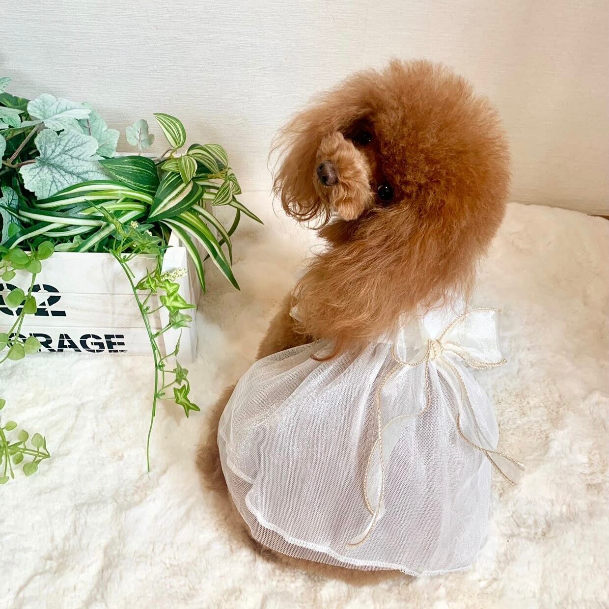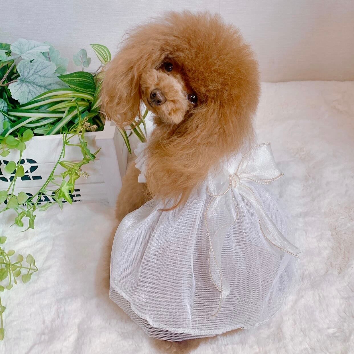 white tulle ribbon dress