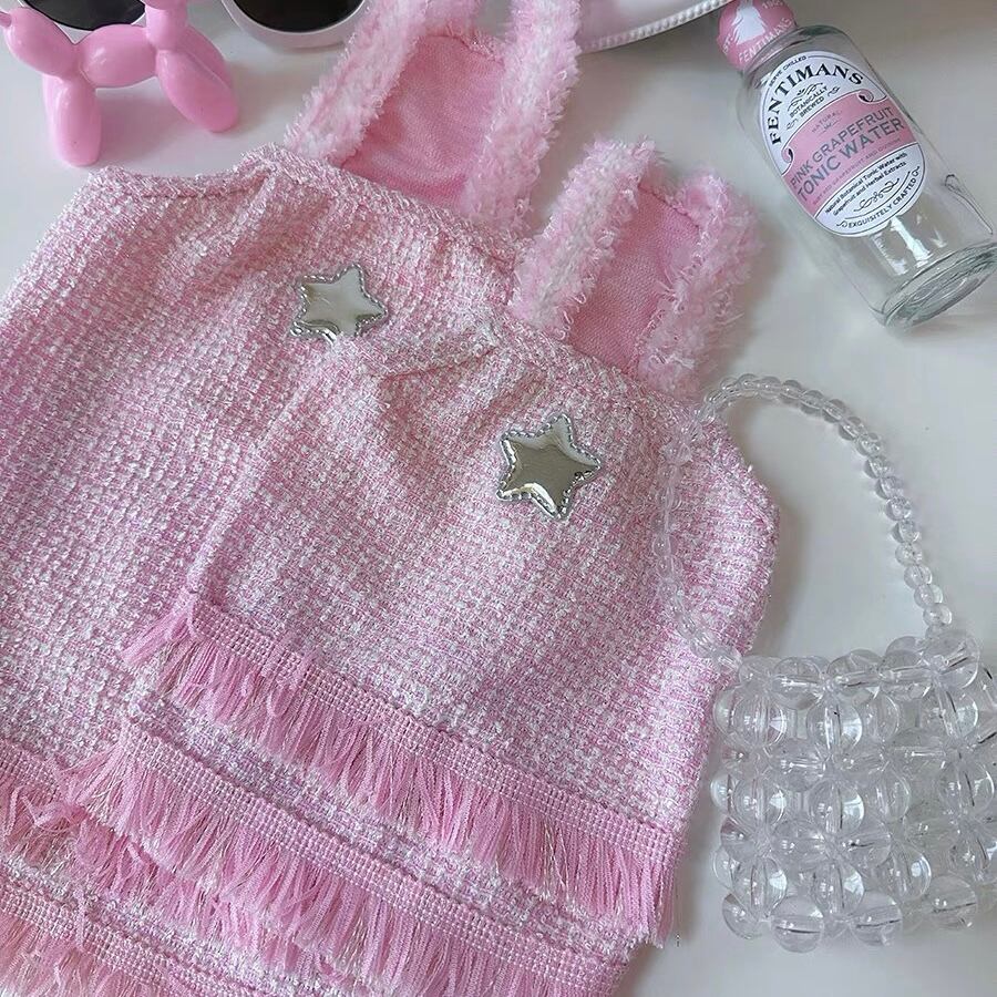 fringe color camisole one-piece
