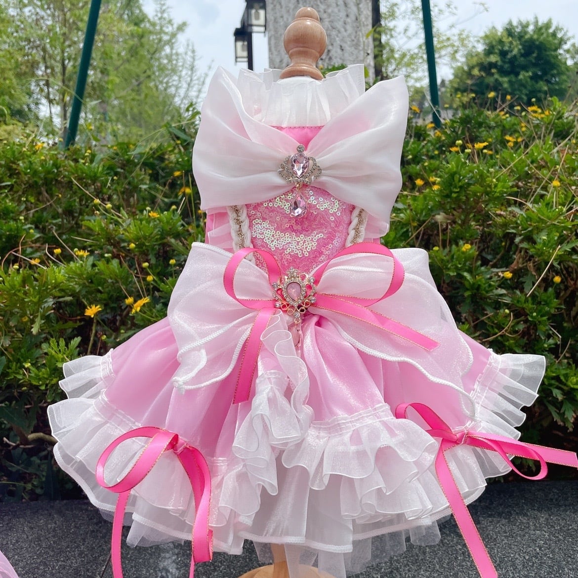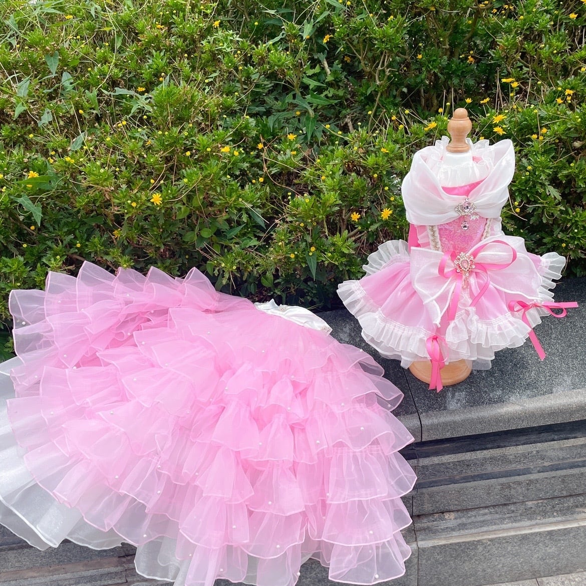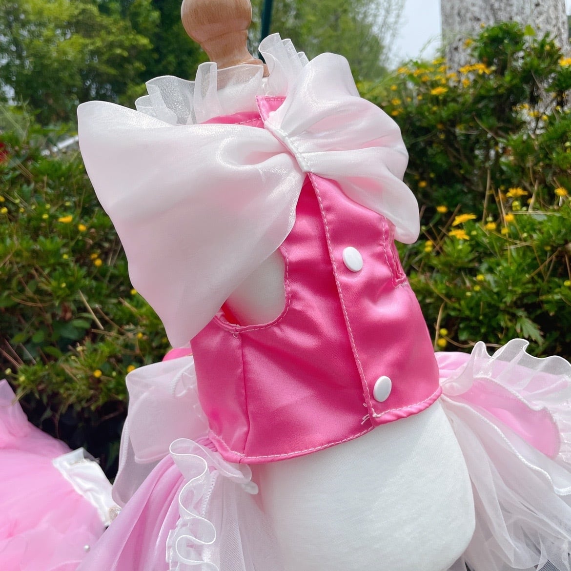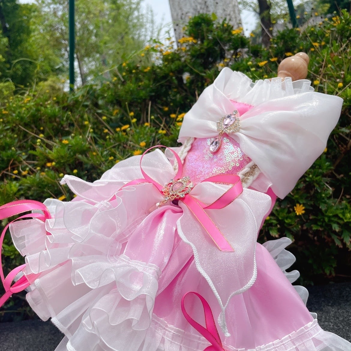 ロングスカートが取り外しできるようになっており、スカートをピンで留めて2wayで楽しめます。
