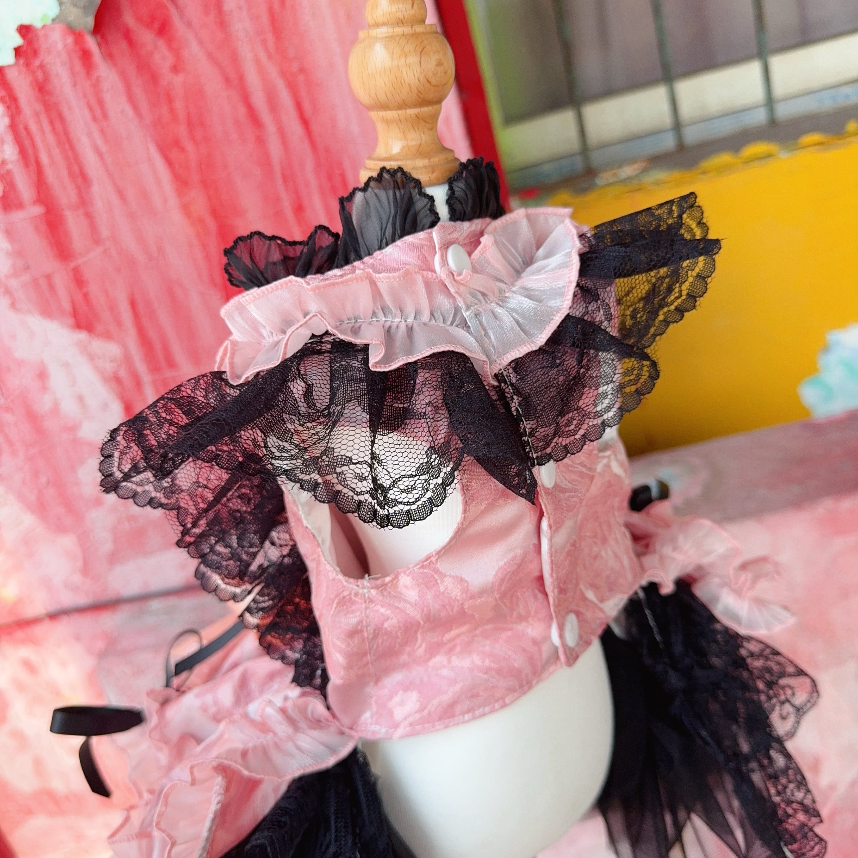 ロングスカートが取り外しできるようになっており、スカートをピンで留めて2wayで楽しめます。